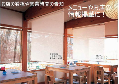 お店の看板、お知らせの掲示やご家族の写真、大好きな方やペットの写真をオリジナルロールスクリーンとしてプリント加工致します。 |